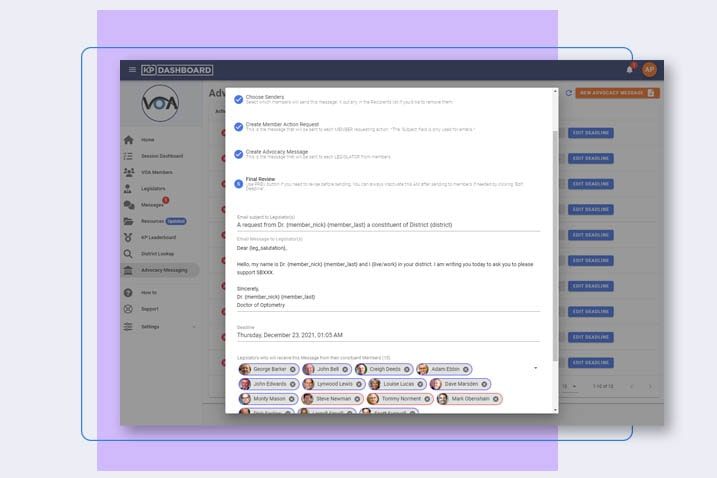 Create personalized messages for your KPs or Advocates to send to their Legislators in just a few clicks...