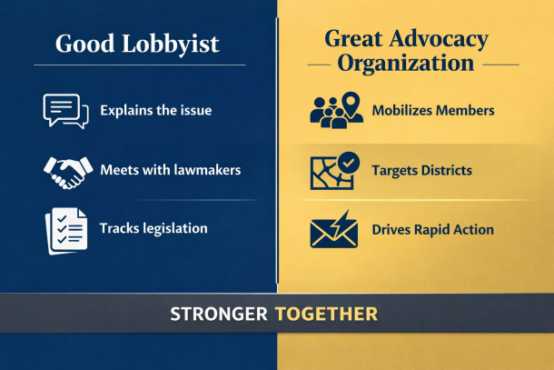 While financial contributions and a bill's content are important, the personal rapport between key individuals and legislators often plays a more decisive role in the legislative process. Associations aiming to pass legislation should prioritize cultivating these relationships to enhance their advocacy efforts and achieve their policy objectives.